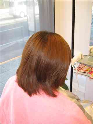 手触りもとても良く、柔らかく仕上がり、根元の新生部の所にもしっかりと色が入っていました。「M3Dカラー」って、トリートメントの時でも 思っていた以上に色が入るみたいですね。これならば特別にカラーリングをしなくても「M3DカラートリートメントW」だけでもOKなお客様が増えそうな気がします。