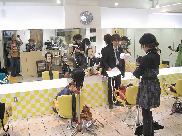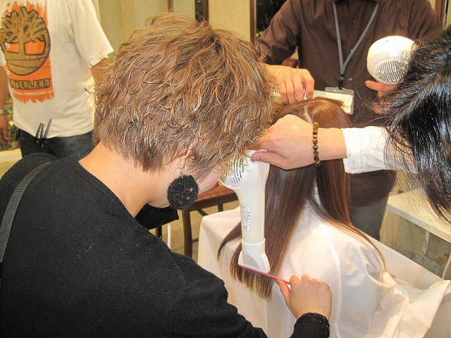 コームの角度やドライヤーの角度を講師さんがチェックしています。