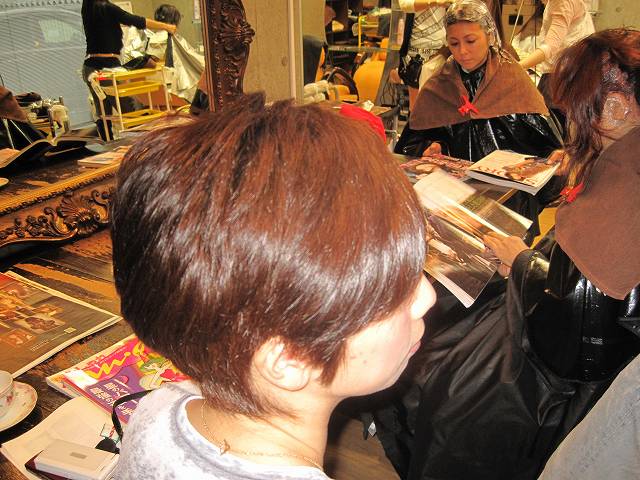 まずは、各サロンのモデルさんの髪の仕込と、薬剤の使用量を