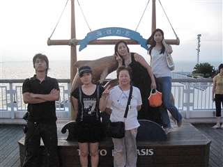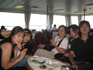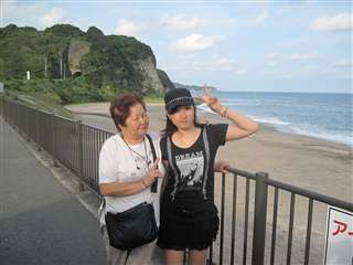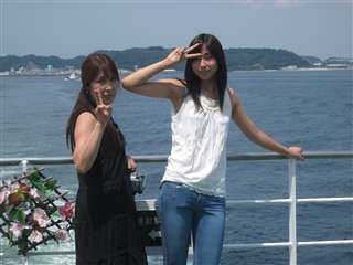 デッキに出てみた、おかあと、次女。後ろに見えるのは久里浜港
