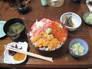 こっちは、三色丼、「ネギトロ・ウニ・イクラ」がのってます。