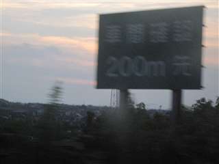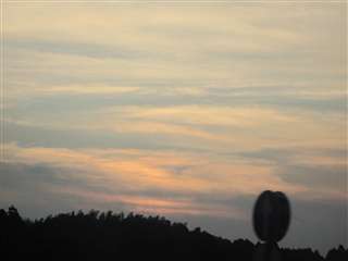 奇麗な夕焼け、でもさ~、高速で走っている車から標識を撮る方