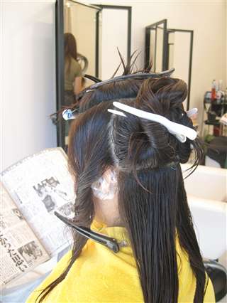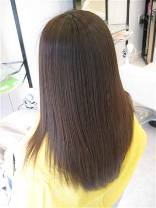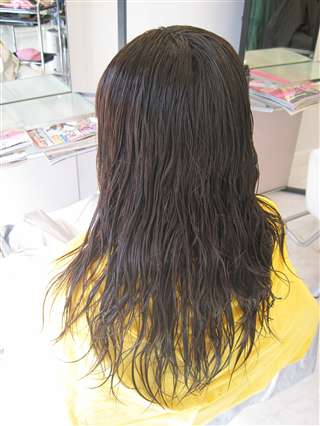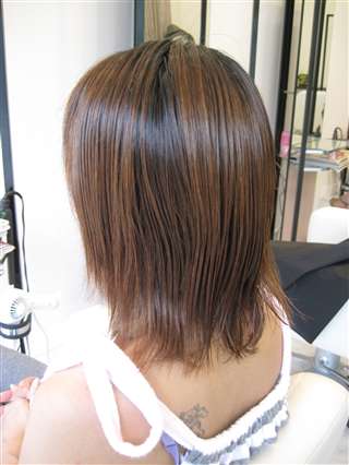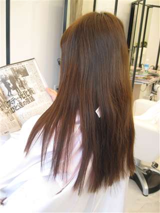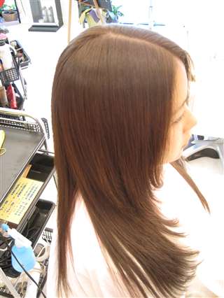 全体にカラーがしてあり、毛先には、ストレートが残っています。