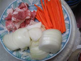 ニンジンと玉ねぎは包丁で千切り&短冊に切ってね