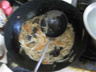 この後、モヤシくんを中華鍋に入れ、良く炒めます。