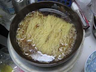 たっぷり沸かした別の鍋に「生ラーメン」を入れ茹でます。