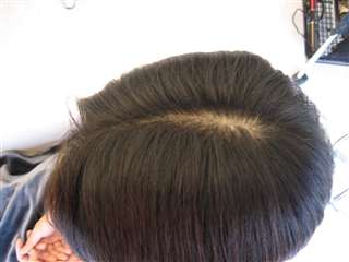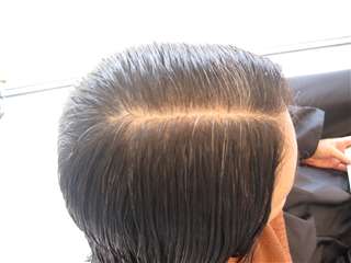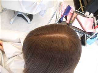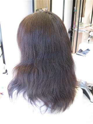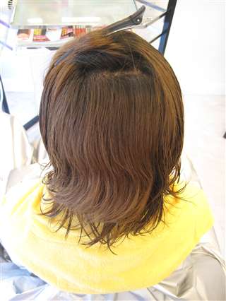 シャンプー後に、一部分をドライ、クセをもう一度チェック。