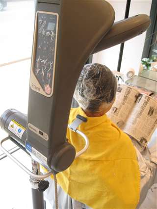 お腹に赤ちゃんがいるから、ノンジアミンで施術しましょうね~。