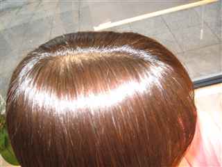 今日は、初めにカラーリングをして、カットをしてからの施術です。