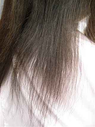 毛先の方はかなり乾燥していて、手触りも硬い感じがします。