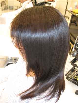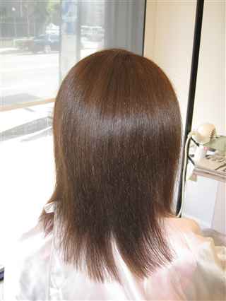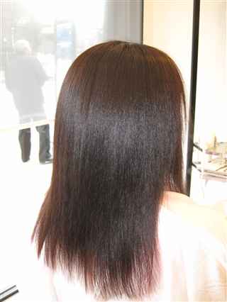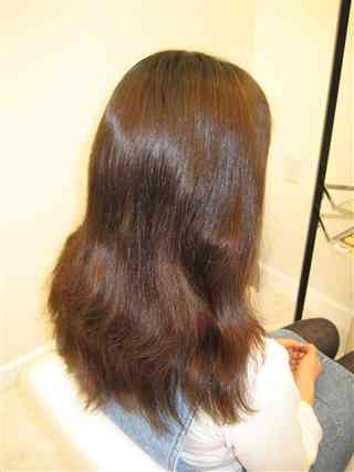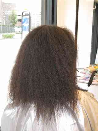 こちらのお客様は、1か月位前に「M3Dカール」を他のお店でかけています。カラーはしていません。ダメージは毛先にややビビリが有りますが、今回はノーカットでの施術を希望です。