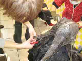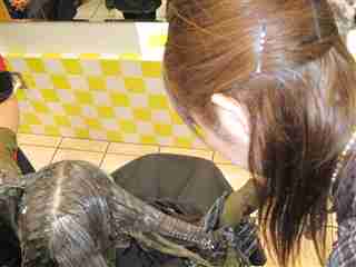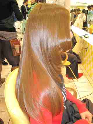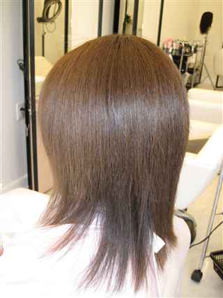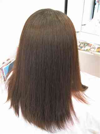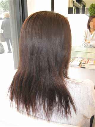 ここで問題が起きました。カラーです。やや明るいのはご自分の色と、ダメージによるもので染めてはいないとのことでした。