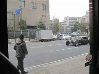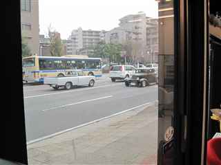 一番窓側で仕事をしていたので、道行く人が、「何やってんだろ?」って顔で見ていました、気がついたらバスのお客さんが3~4人見てたしね。面白かったですよ。