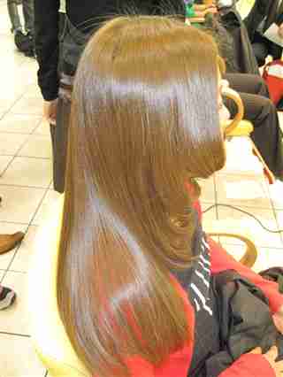 お姉ちゃんの生贄にはさせないぞ!っと、愛を込めて180°のアイロンでじっくりと熱酸化!毛先まで光の帯が来ていますよね。