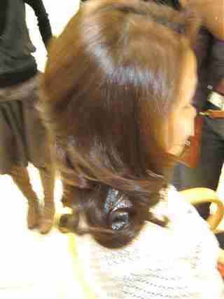 出来上がりがこちら。流した後にほつれている所や、巻きが緩い所をもう一度 巻き!巻き! して、よさげな所の毛束を使って後ろで束ねました。ツーブロックになっている理由知ってます? はい! 大正解! 巻くのが大変だからで~す!