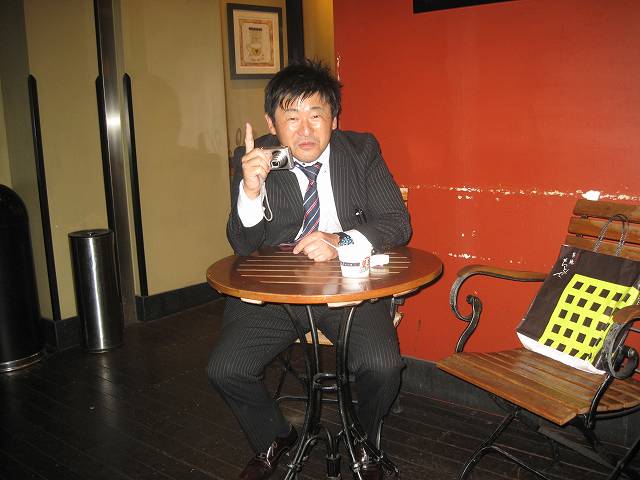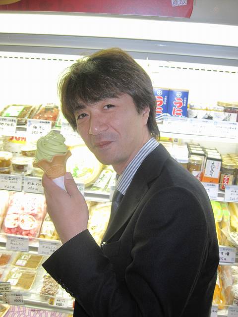東條先生。後ろにいるのは坂本店長かな。