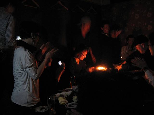 一斉に「ハッピバースデートゥーユー」です。