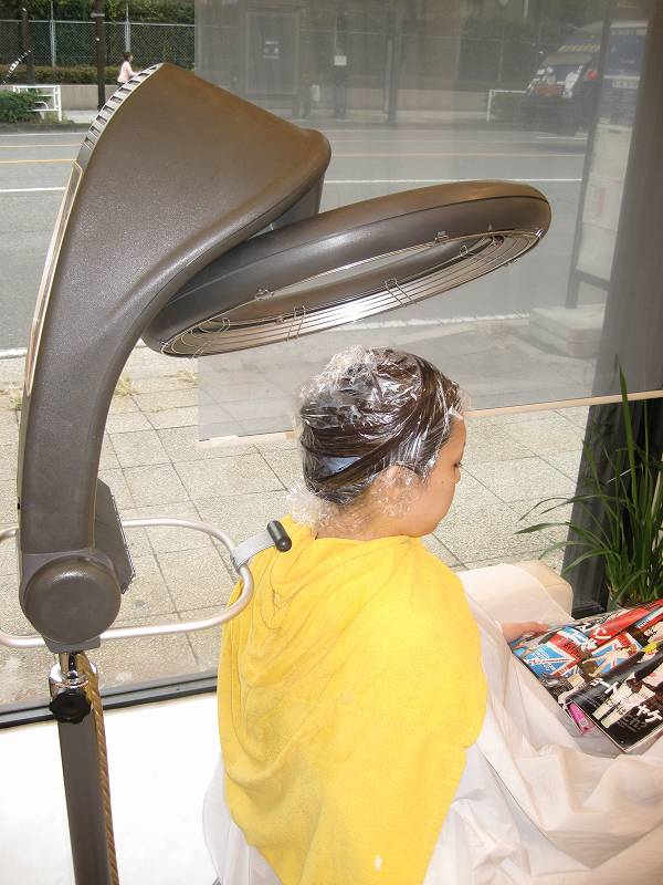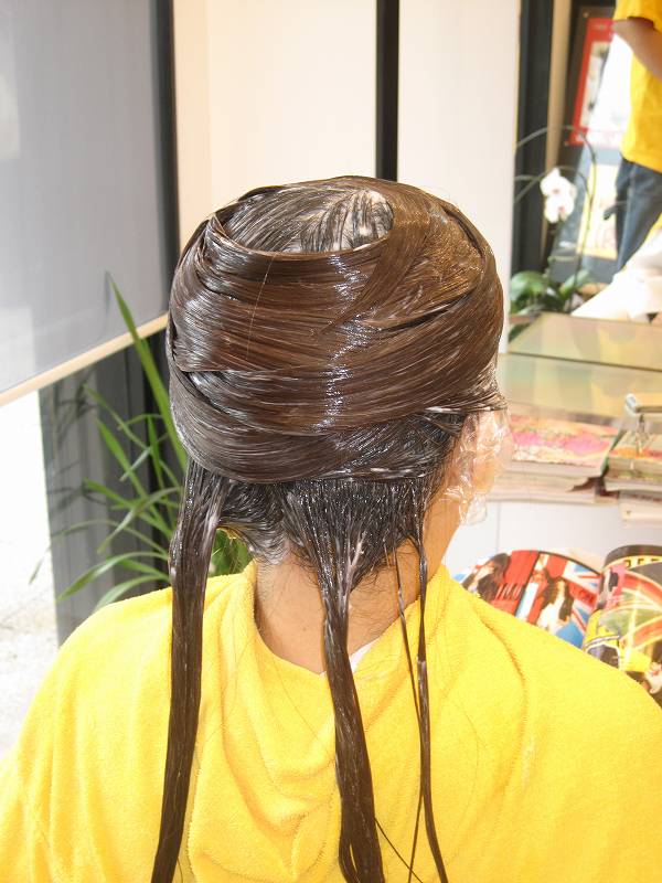 ただ今、パーマを巻き終わり、放置中です。